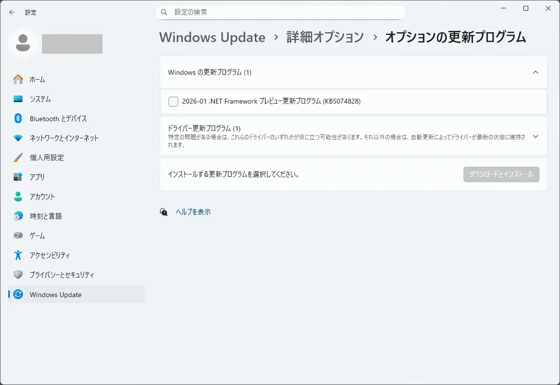 引き続き 2026-01 .NET Framework プレビュー更新プログラム (KB5074828) が表示されていました。