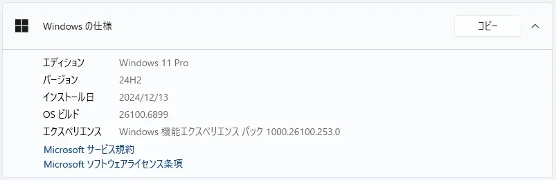 OS ビルドが 26100.6899 から 26200.6899 に変わりました。